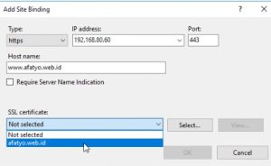 Untuk melakukan installasi SSL Certificate pada IIS, pastikan anda sudah melakukan langkah langkah untuk import file certificate pada Windows Server.